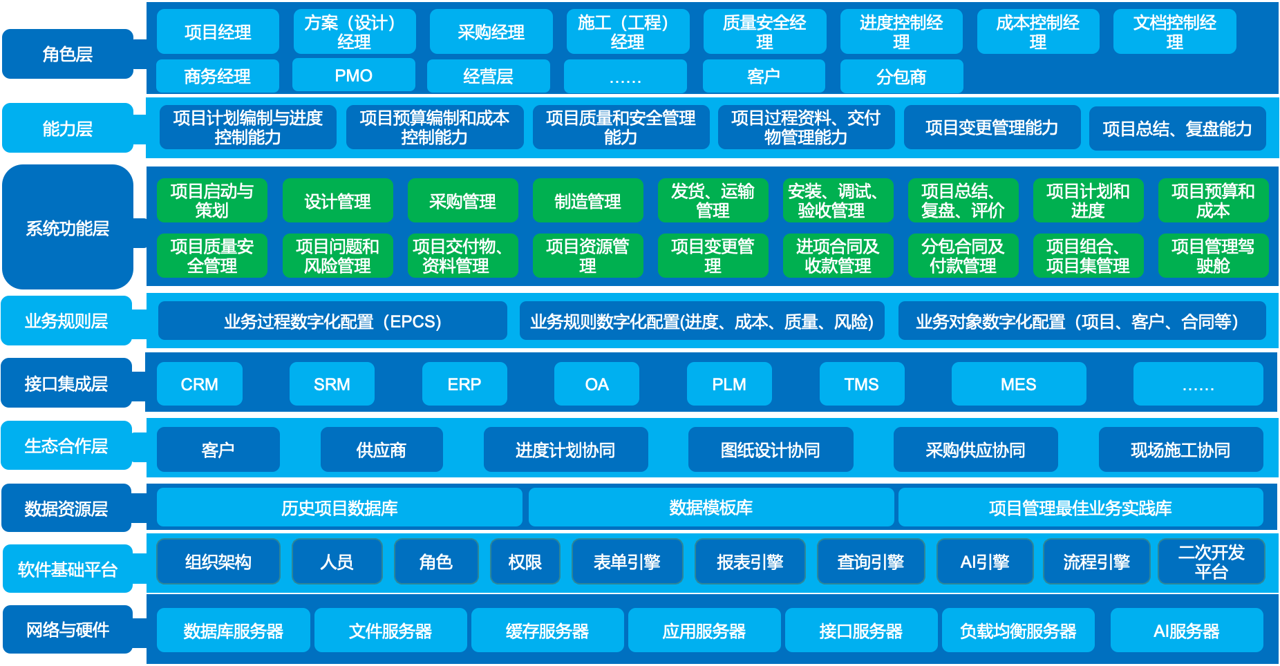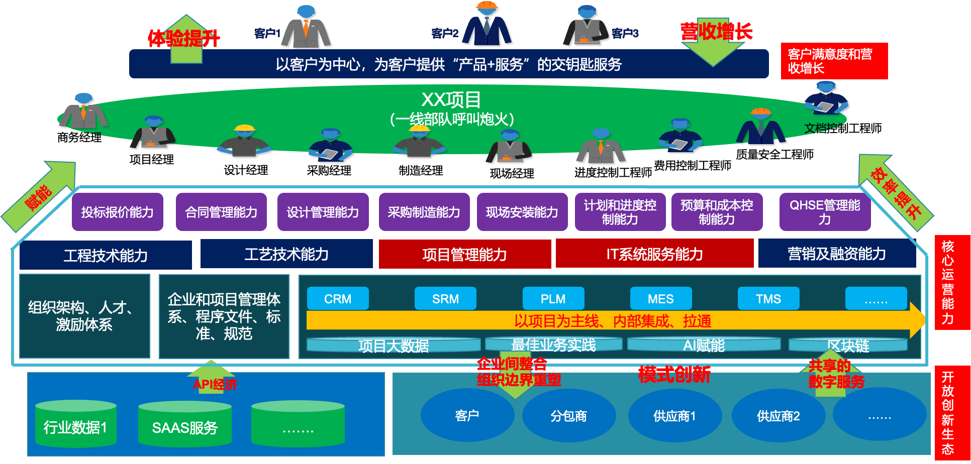 一個項目全過程、全要素管理的數(shù)據集成平臺; 一個連接和賦能項目參與方的生態(tài)合作平臺,實現(xiàn)服務型制造企業(yè)項目管理的組織在線、溝通在線、協(xié)同在線、業(yè)務在線和生態(tài)在線。