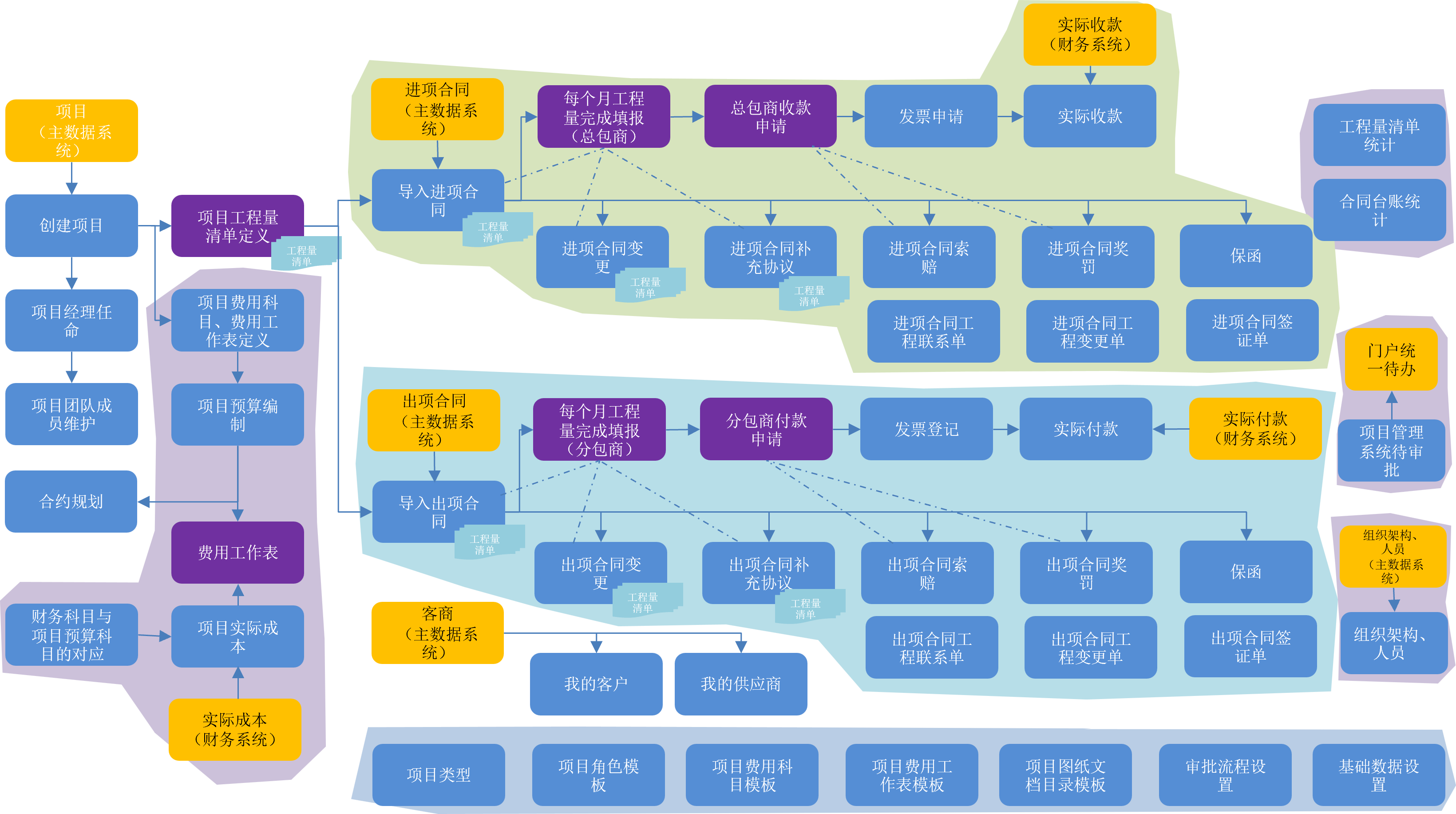 第一批上線的功能主要包括組織架構(gòu)、項目類型、數(shù)據(jù)模板、項目、項目人員、總包合同、分包合同、工程量清單、月度工程量完成情況填報、收款申請、發(fā)票申請、實際收款、付款申請、發(fā)票登記、實際付款。完成了與主數(shù)據(jù)系統(tǒng)、合同管理系統(tǒng)、財務(wù)系統(tǒng)、門戶系統(tǒng)的4個系統(tǒng)11個接口的開發(fā)與集成工作。完成了8類典型項目的數(shù)據(jù)模板、業(yè)務(wù)流程、審批流程的梳理。應(yīng)用范圍涵蓋院、10余個二級分院及在建的幾十個項目。