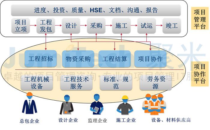 圍繞項(xiàng)目交付過程的協(xié)作:在具體項(xiàng)目的交付過程中,項(xiàng)目干系人可以對(duì)設(shè)計(jì)、采購、施工、竣工驗(yàn)收過程中的進(jìn)度管理、質(zhì)量控制、安全控制、文件交付、工作聯(lián)系單、進(jìn)度款結(jié)算、采購物流信息等,進(jìn)行項(xiàng)目交付過程中的多方協(xié)作。