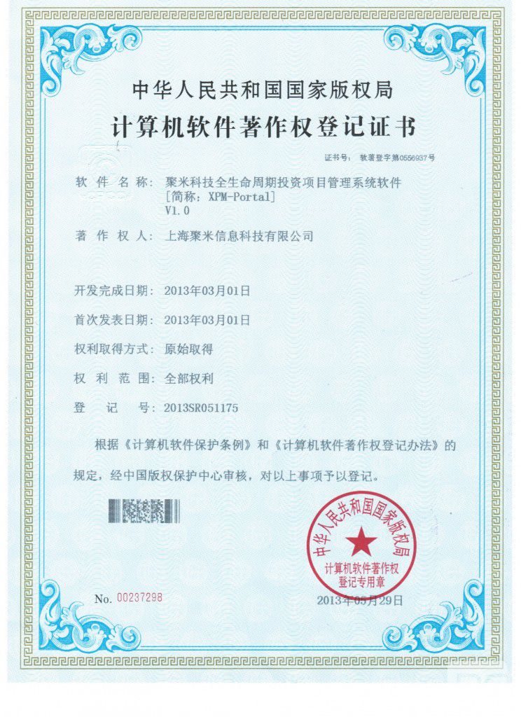 近日,聚米科技喜獲有中華人民共和國(guó)國(guó)家版權(quán)局頒發(fā)的兩項(xiàng)計(jì)算機(jī)軟件著作權(quán)證書,分別為《聚米科技全生命周期投資項(xiàng)目管理系統(tǒng)軟件[簡(jiǎn)稱:X
