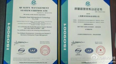 今年8月,上海聚米信息科技有限公司(下面簡(jiǎn)稱聚米)再次順利通過(guò)ISO9001:2008國(guó)際質(zhì)量管理體系的外部審核。審核的圓滿結(jié)束標(biāo)志著本年度公